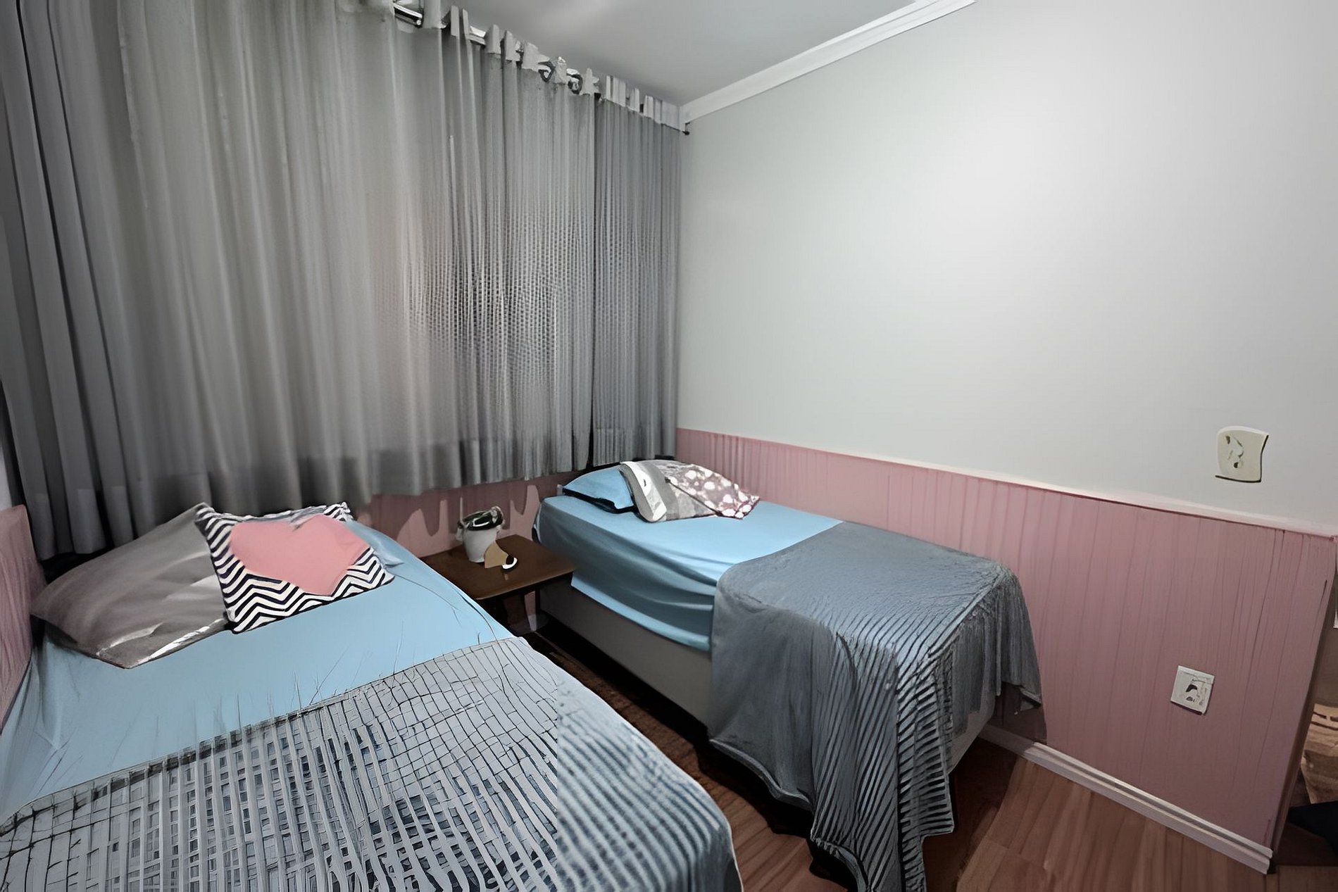 Imagine dias ensolarados à beira da piscina e noites agradáveis em torno da churrasqueira. Nossa quarto com 2 camas de solteiro, acolhe até 2 hóspedes com conforto.