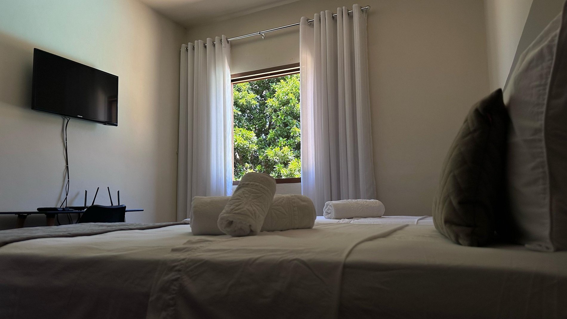 Fornecemos roupas de cama e banho de alta qualidade, trocadas a cada estadia.